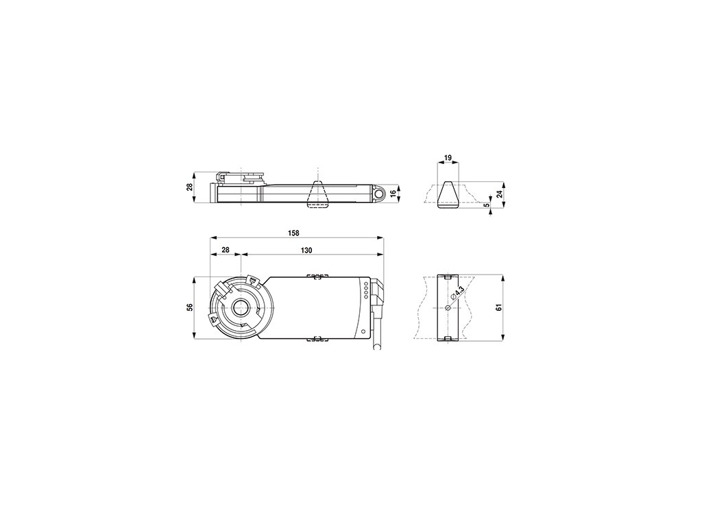 Servopohon Belimo má ochranu proti přetížení, která automaticky zastaví pohon při dosažení koncových poloh klapky. Úhel otevření / zavření klapky si můžete nastavit pomocí mechanických koncových dorazů na zpětné klapce.