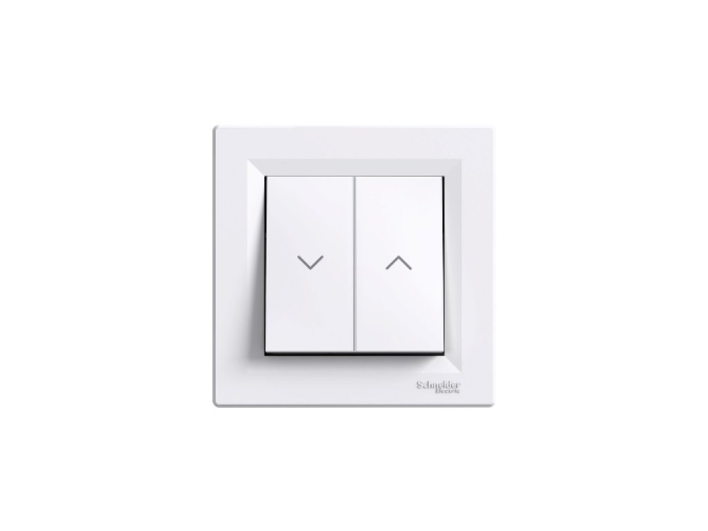 Schneider Electric, UNICA, ASFORA, tělo, přístroj, ovladač, spínač, spínače, vypínač, vypínače, žaluziový, na, pro, vrata, žaluzie, rolety, bílý, komplet, EPH1300121, dvojitý, dvojspínač, s rámečkem, spínač slouží k ovládání pojezdu žaluzie, rolety nebo vrat