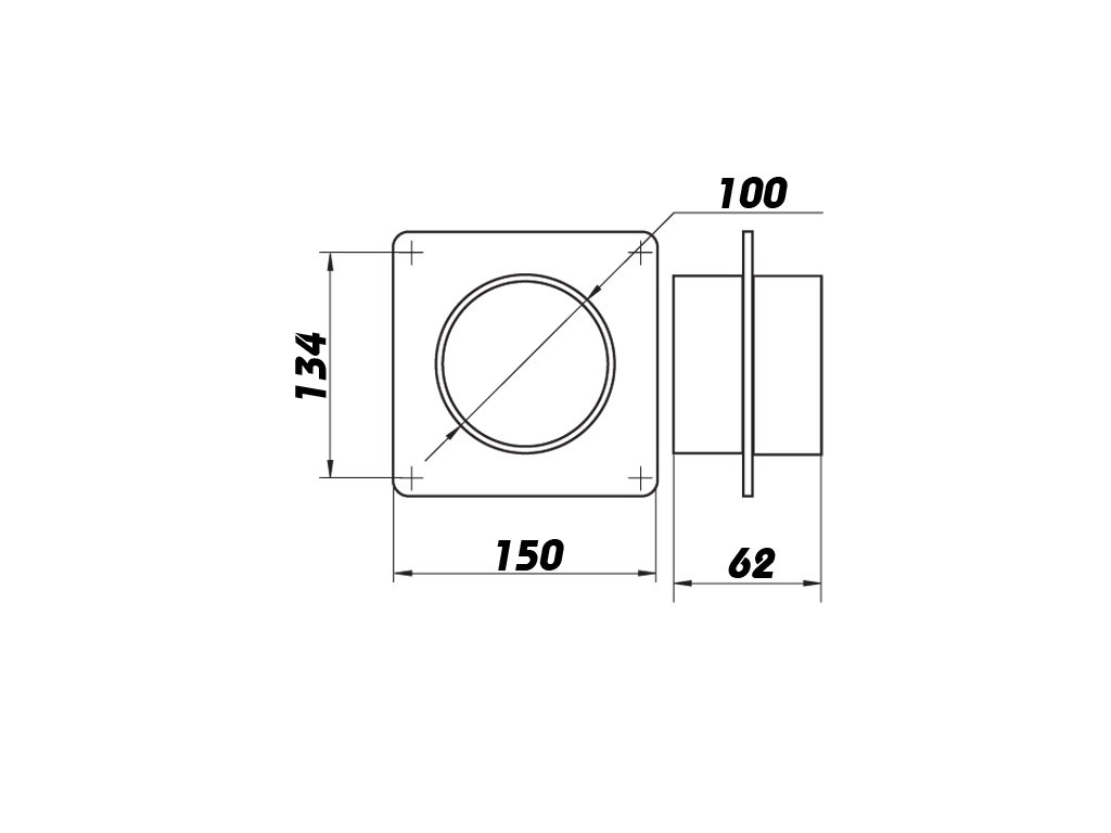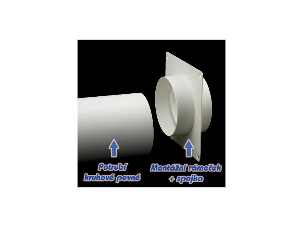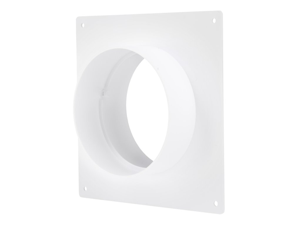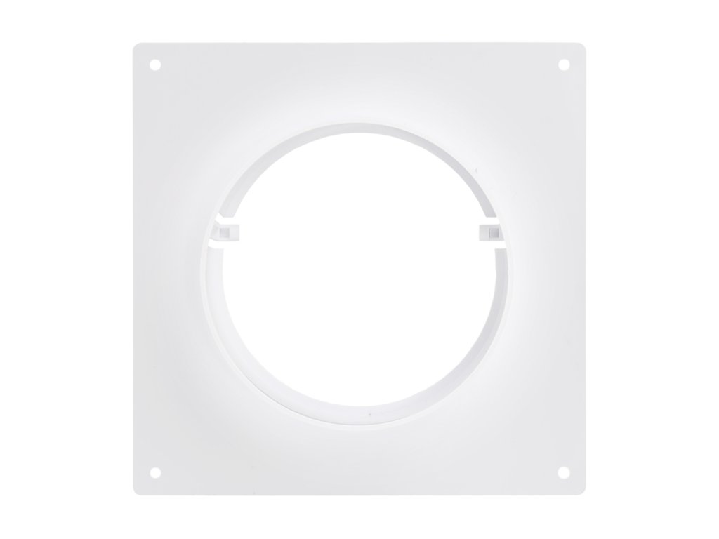 Montážní rámeček se spojkou pro kruhové potrubí s průměrem 100 mm. Spojka je kompatibilní s veškerým vzduchotechnickým potrubím o průměru 100 mm z našeho sortimentu.