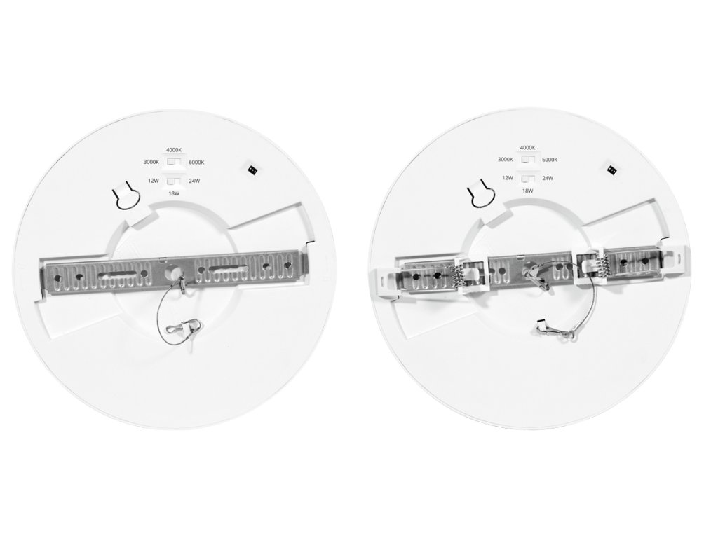 LED světlo je unikátní i svým montážním mechanismem, díky kterému lze svítidlo nainstalovat jako přisazené přišroubováním přímo k povrchu nebo upevněním pomocí posuvných pružinek, které se vloží do připraveného otvoru podobně jako u bodových svítidel. Svítidlo je tedy vhodné i jako vestavné do podhledů pro: kanceláře, obchody, prodejny, výklady, hotely, restaurace, školy, knihovny, konferenční místnosti, nemocnice, atd. K rychlému zapojení kabelů bez šroubování je připravena vestavěná svorkovnice.