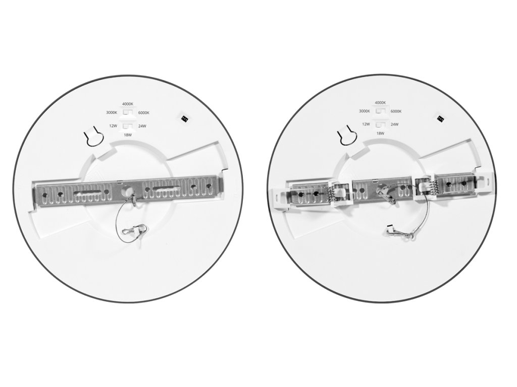 LED světlo je unikátní i svým montážním mechanismem, díky kterému lze svítidlo nainstalovat jako přisazené přišroubováním přímo k povrchu nebo upevněním pomocí posuvných pružinek, které se vloží do připraveného otvoru podobně jako u bodových svítidel. Svítidlo je tedy vhodné i jako vestavné do podhledů pro: kanceláře, obchody, prodejny, výklady, hotely, restaurace, školy, knihovny, konferenční místnosti, nemocnice, atd. K rychlému zapojení kabelů bez šroubování je připravena vestavěná svorkovnice.