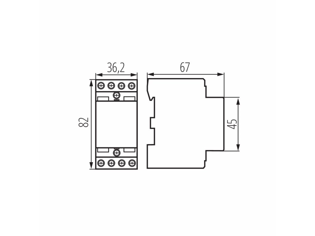 STYKAČ dvoumodulový, jednofázový, 25A, 230V, do, rozvaděčů, slouží k automatickému spínání elektrických spotřebičů, STYKAČ čtyřpólový dvoumodulový. Stykače mají vysokou mechanickou odolnost a četnost spínání, při relativně malých rozměrech, nízké hmotnosti a vysoké odolnosti. Používají se ke spínání elektrických spotřebičů běžném provozu. Shoda s normami PN-EN 60947-4-1, IEC/EN 61095. Maximální spínaný výkon do 15kW. Vhodné pro kategorie spínaných zátěží AC7a. a AC7b.