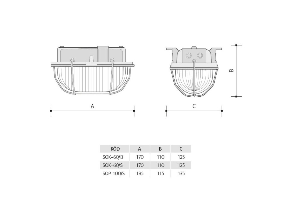 Přisazené nástěnné nebo stropní svítidlo PANLUX SOK-60/S s ochranou kovovou mřížkou a čirým krycím sklem. Vhodné pro osvětlení na interiér, exteriér, chodby, sklepy, sociální zařízení, atd. Variabilita použití, několik možných vstupů do svítidla. Svítidlo má tři vývody pro průchozí montáž. Je vhodné zejména do veřejných prostor, chodeb, sklepů, atd.