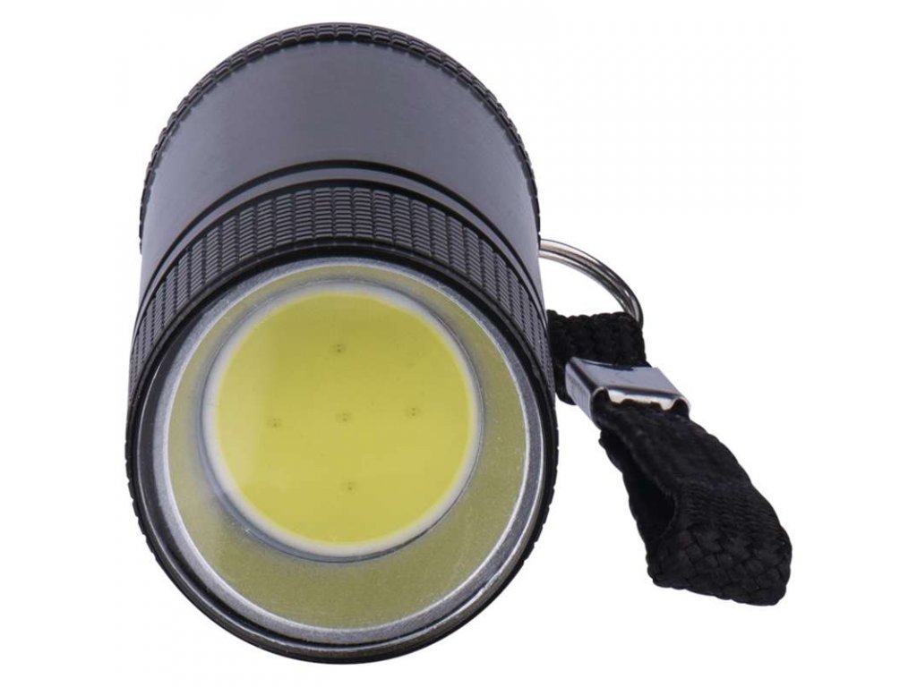 Kovová LED COB svítilna s dosvitem 15m. Praktická nárazuvzdorná svítilna do 1m je ideální na chaty, při kempování, ale i jako alternativní zdroj světla v domácnosti, pokud dojde k výpadku elektrické energie. Doba svícení je až 35 hodin. Napájení ruční svítilny je pomocí 3x AAA 1,5 V baterie (mikrotužka).