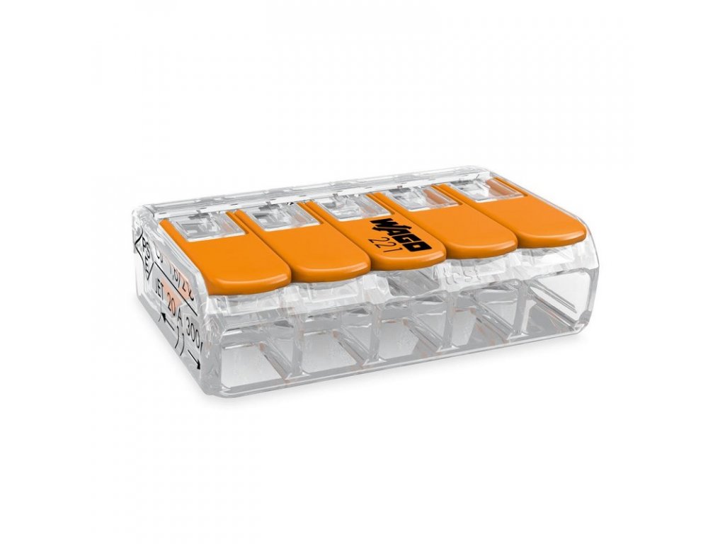 Svorka krabicová bezšroubová (wago) 5 x 4 s páčkou na licnu
