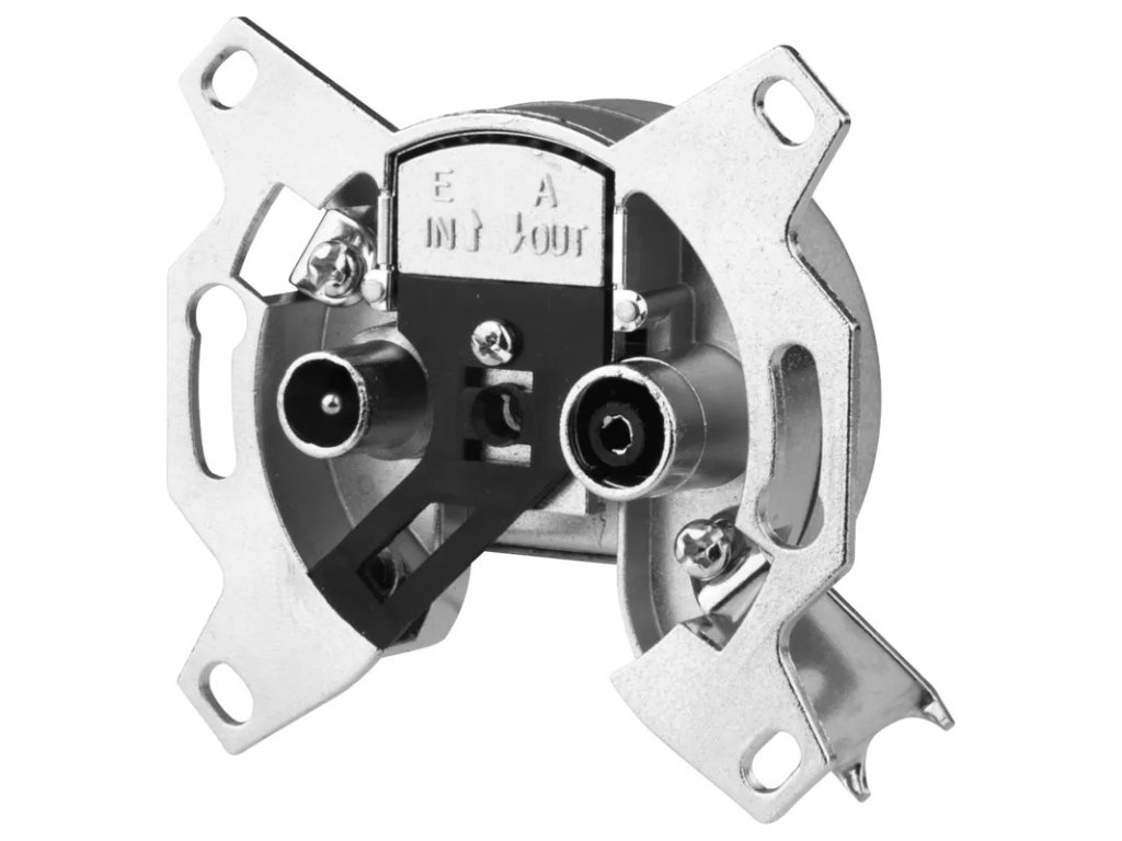 Účastnická zásuvka EU 3503 koncová s útlumem 3 dB a zdířkami pro TV + Rádio. Účastnická zásuvka propojuje např. anténu s televizí, satelitem, set-top-boxem, internetem nebo telefonem. Zásuvka není průchozí pro stejnosměrné napětí.