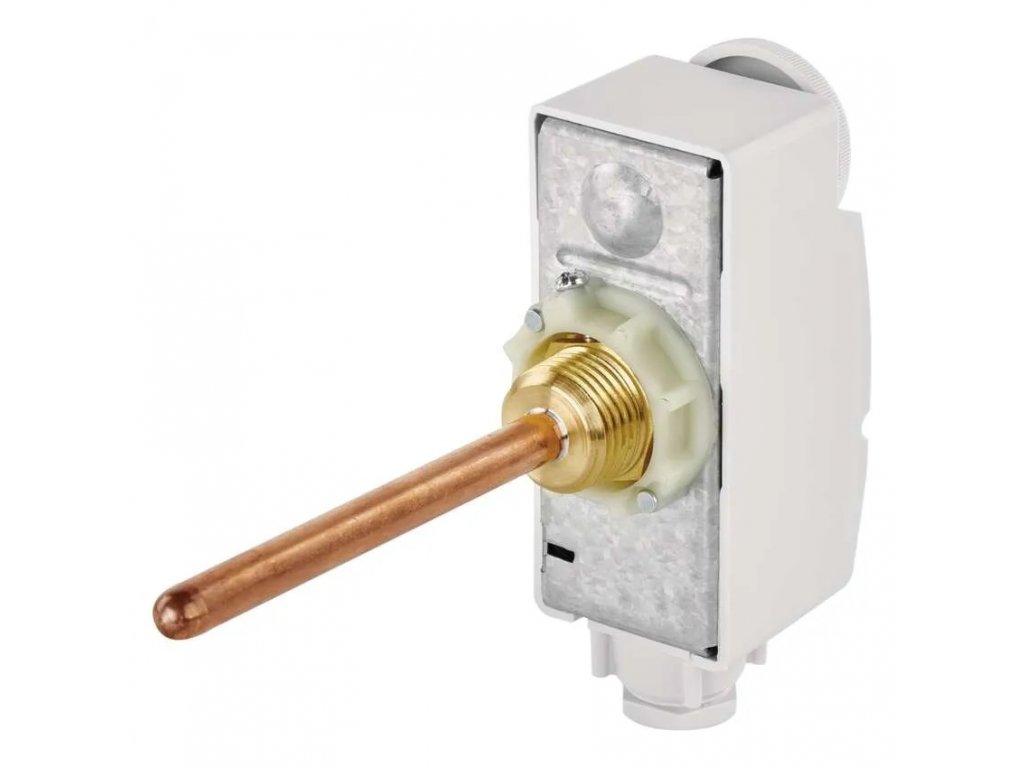 Příložný jímkový termostat montovaný do jímky. Jímka je opatřena vnějším závitem. Snímá teplotu vody v zásobnících teplé užitkové vody nebo v topných systémech. Umožňuje regulaci teploty, hlídání teplotních omezení a funkci poklesu teploty.