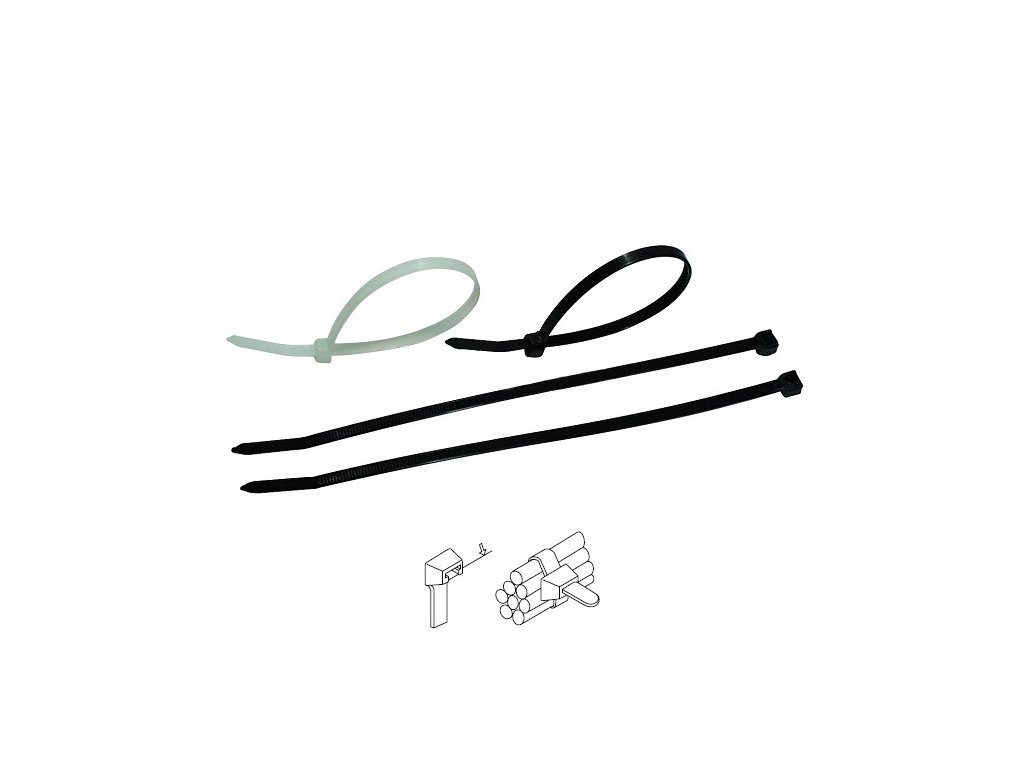 Popis : Vázací pásky jsou z polyamidu 6,6 (Nylon 66) dle UL 94V-2. Vázací pásky mají teplotní stálost –40°C až +85°C. Teplota pro montáž +10°C až +30°C. Skladovací teplota +20°C až +25°C (vlhkost vzduchu 50%). Vázací pásky jsou odolné vůči rozpouštědlům, benzínu, olejům, slané vodě, plísním a vůči ředěným organickým kyselinám.