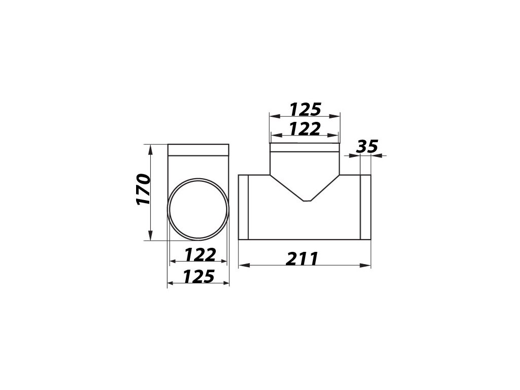 Tato plastová roztrojka se jednoduše nasadí na potrubí, žádné další komponenty nejsou třeba. Roztrojka je kompatibilní s veškerým vzduchotechnickým potrubím o průměru 125 mm, které nabízíme.