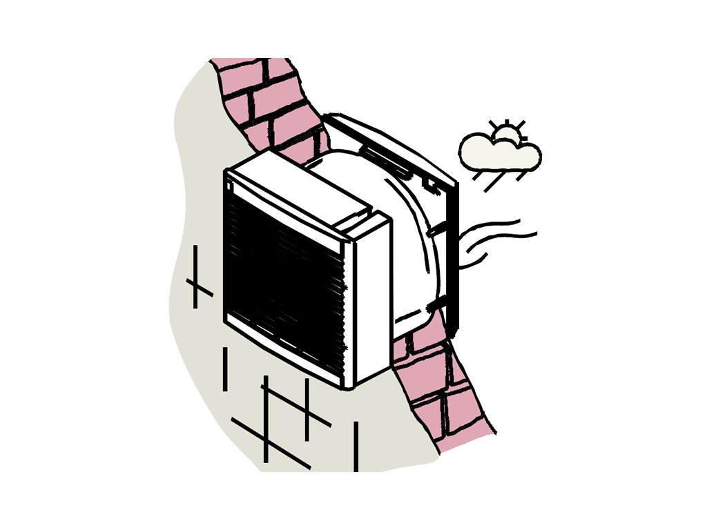 MONTÁŽ:Ventilátory lze montovat ve svislé poloze jak na zeď, tak i do okna. Montáž na zeď se provádí upevněním vnitřní jednotky a vnější krycí mřížky pomocí vrutů a hmoždinek, které jsou součástí dodávky. Při montáži do okna se vnitřní jednotka a vnější dekorativní mřížka sešroubuje přes otvory ve skle.