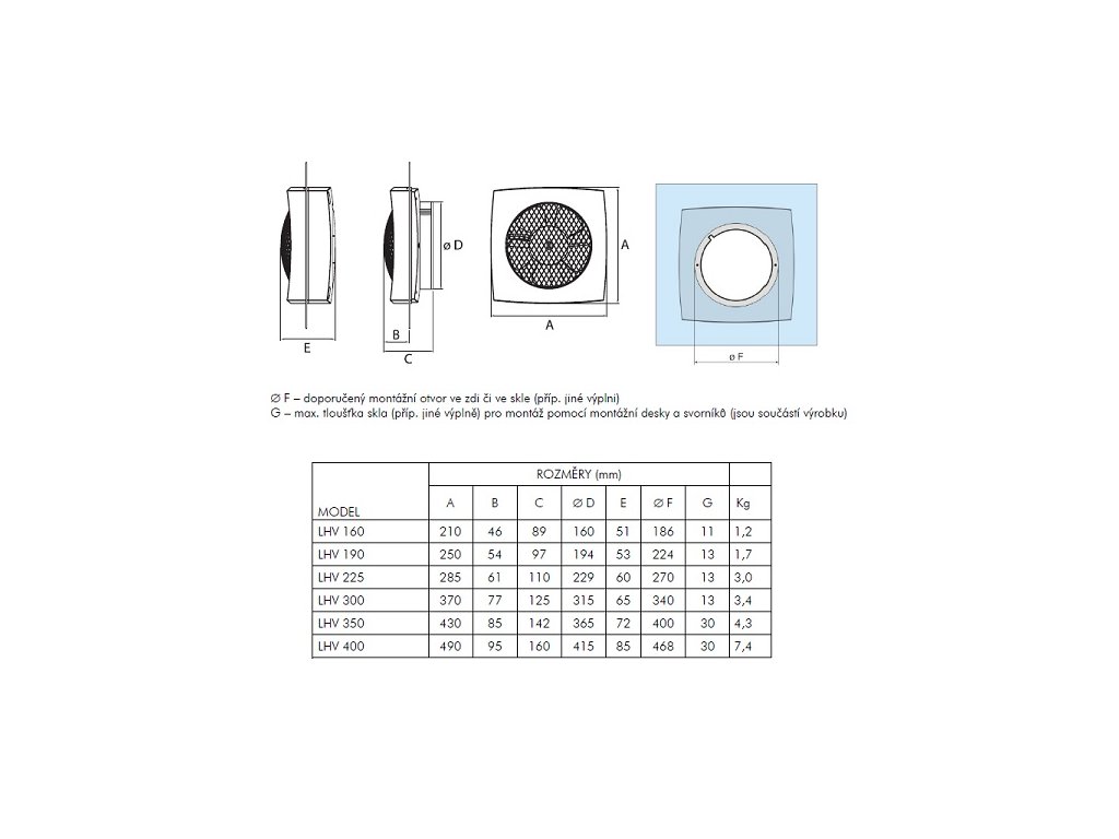 Ventilátory LHV jsou vybaveny fixační deskou pro montáž do skla. Pro montáž na zeď se tato fixační deska z ventilátoru odmontuje a nepoužije se.