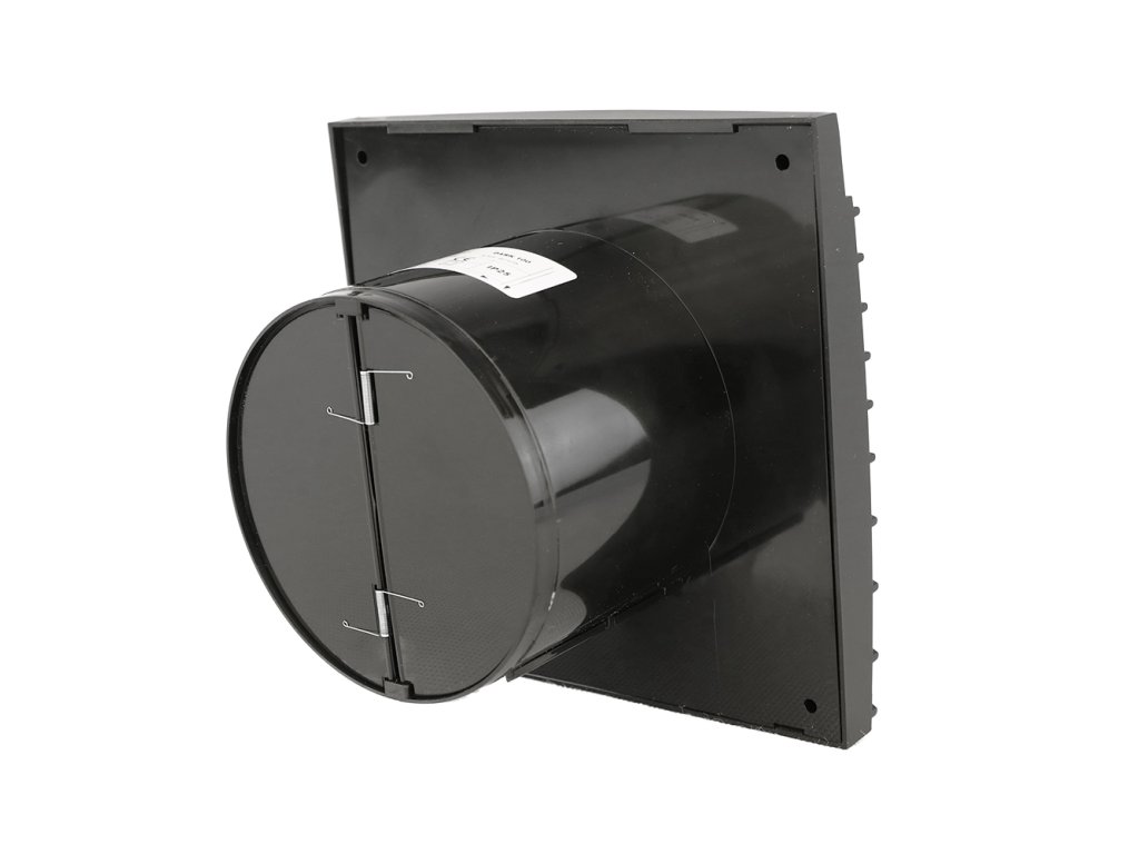 Tichý ventilátor do koupelny s časovým doběhem a zpětnou klapkou Dalap DARK Z 100 černý