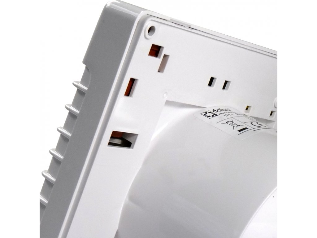 Čelní strana koupelnového ventilátoru s časovačem Dalap 100 LVMZ je opatřena automatickou žaluzií, která nahrazuje zpětnou klapku. Design ventilátoru neruší žádné logo, ani nápisy, a proto působí stylově v každé místnosti.
