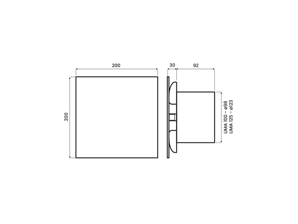 Ventilátor LIMA 125 T o průměru 125 (123) mm pro instalaci do ventilačního potrubí nebo přímo přes zeď. Korpus ventilátoru je vyrobený z hmoty ABS a čelní ozdobný kryt je vyrobený z plastu a hliníkové vrstvy. Čelní kryt ventilátoru poskytuje designový vzhled, ale zároveň jej dělá i odolným vůči mechanickému poškození.