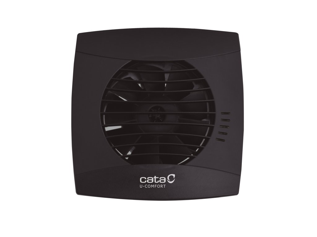 Černý koupelnový ventilátor s časovým doběhem Cata UC 12 TIMER s nízkou spotřebou 12 W, vysokým sacím výkonem 205 m³/h a nízkou hlučností jen 26 dB(A)