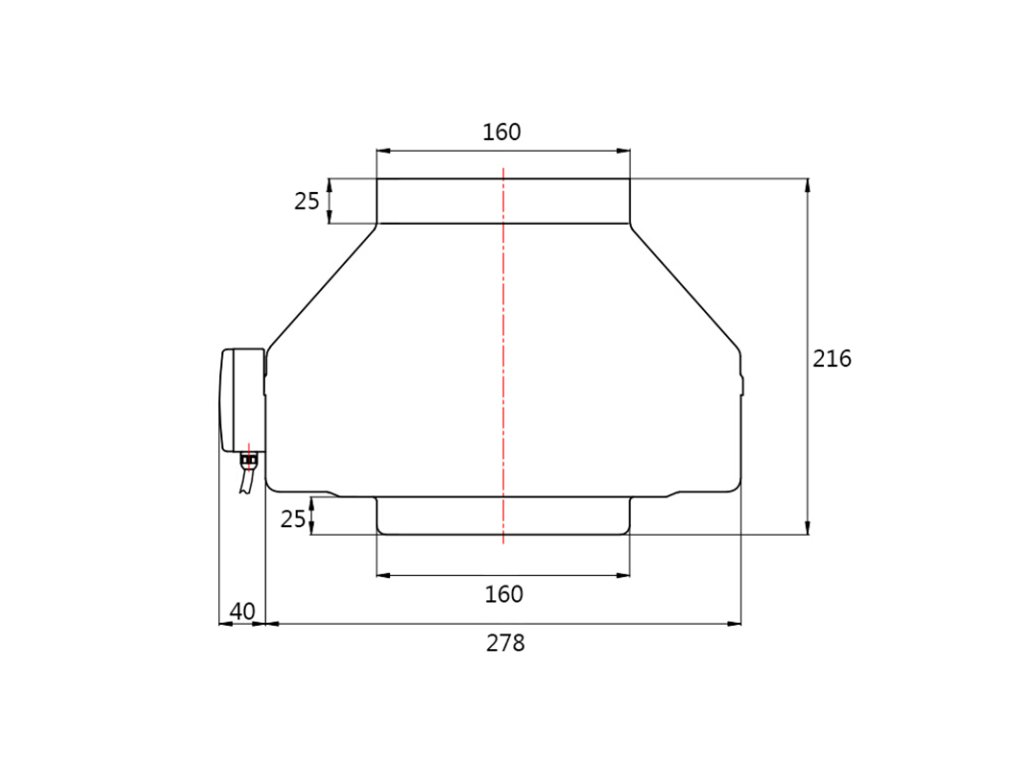 Ventilátor je určen pro montáž do pevného nebo flexibilního potrubí o průměru 160 mm, vhodný pro použití na kratší a střední vzdálenosti potrubí okolo 27 metrů. Instalace ventilátoru je možná, jako pro vertikální, tak i k horizontálnímu umístění. Součástí balení ventilátoru jsou i montážní konzole.