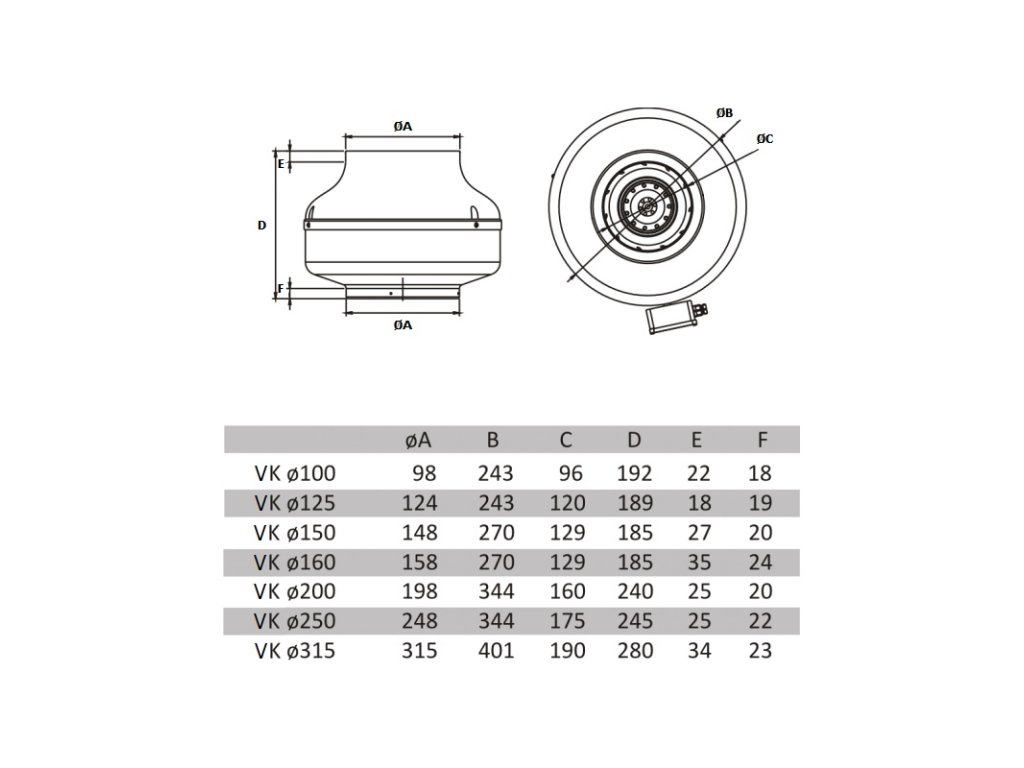 Klimatom VK jsou univerzální průmyslové ventilátory vhodné na připojení do potrubí s vyšší tlakovou ztrátou. Dosahují velký průtok vzduchu při nízké hlučnosti. Ventilátory jsou vybaveny asynchroním motorem se stíněným pólem a ochranou proti přetížení, kuličkovými ložisky a stálou tukovou náplní pro celou dobu životnosti. Ventilátory jsou tedy vhodné i k využívání v nepřetržitém provozu.