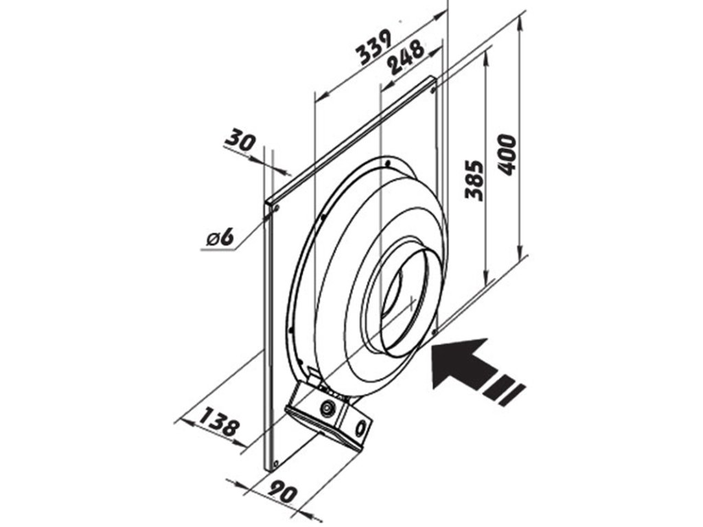 Potrubní průmyslový ventilátor RCV 250 s nástěnnou montáží