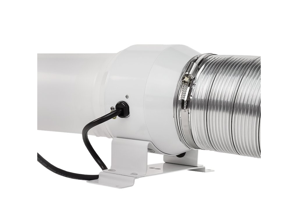Kovový ventilátor do potrubí Dalap MF 100 EC je kompatibilní s plastovým i kovovým vzduchotechnickým potrubím o Ø 100 mm. Spoje kolem příruby ventilátoru doporučujeme utěsnit lepicí páskou. Ventilátor je dodáván společně s napájecím kabelem, regulátorem otáček a dlouhým kabelem pro propojení regulátoru s ventilátorem. Součástí těla ventilátoru je podstava pro stabilní a pevné ukotvení, která zajišťuje snadnou a bezpečnou montáž na zeď i strop.