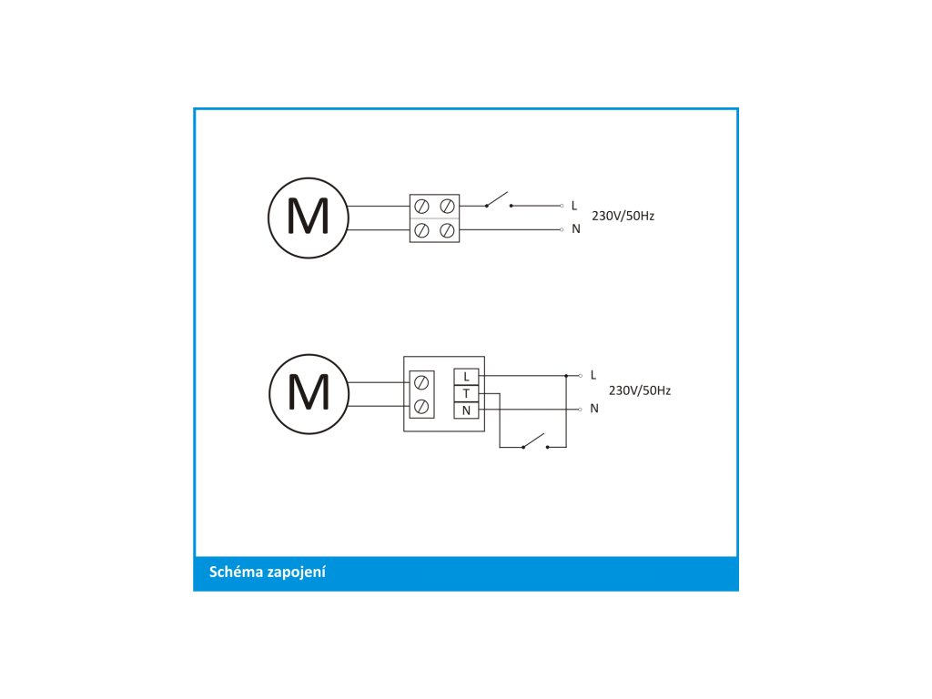 Časový spínač : Ventilátor má standardní nastavitelný časový spínač, který umožňuje plynulé nastavení doběhu od 2 minut do 25 minut pomocí otáčení trimru na desce plošných spojů.