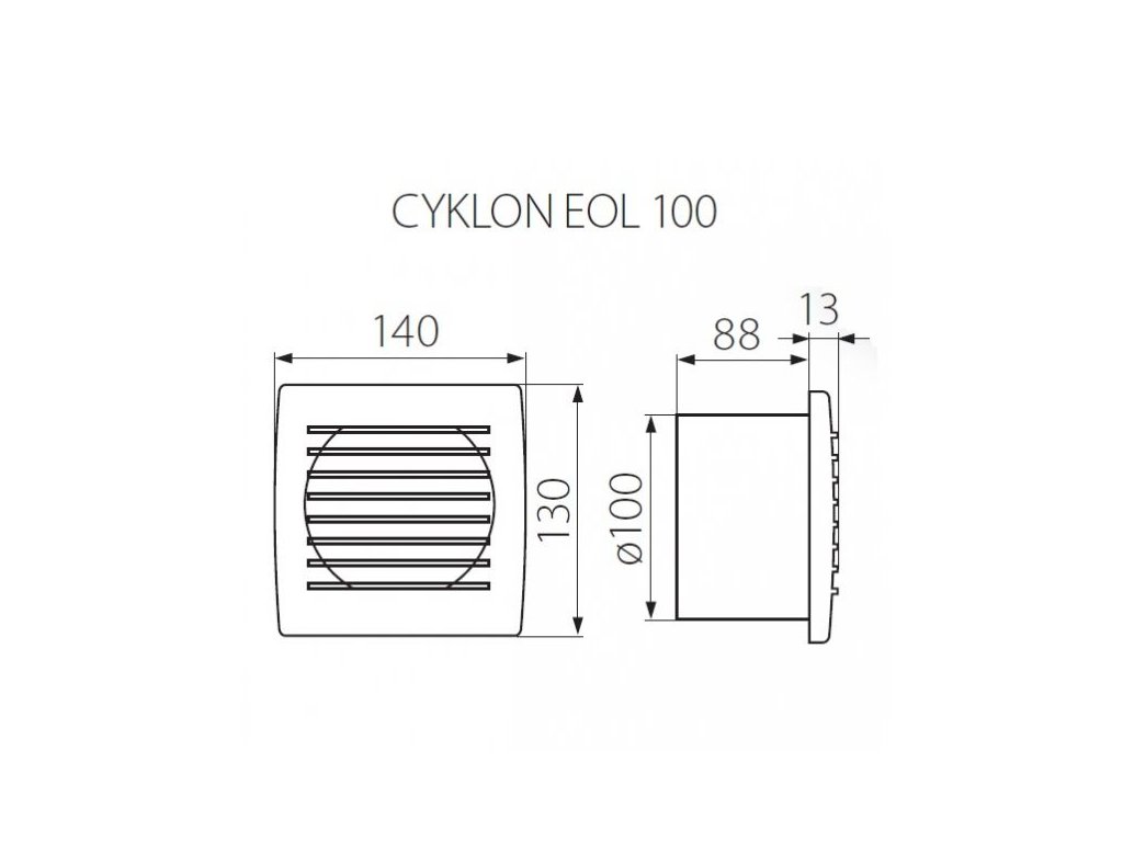 Ventilátor, Cyklon, EOL, ventilátory, axiální, odtahový, odsávací, na, do, koupelny, zdi, WC, pro, kruhové, kruhového, potrubí, trubky, s, průměrem 100, mm, nástěnný, domovní, elektrický, doběhem, doběh, časový, spinač, časovač, timer, timerem, 220V, 230V,