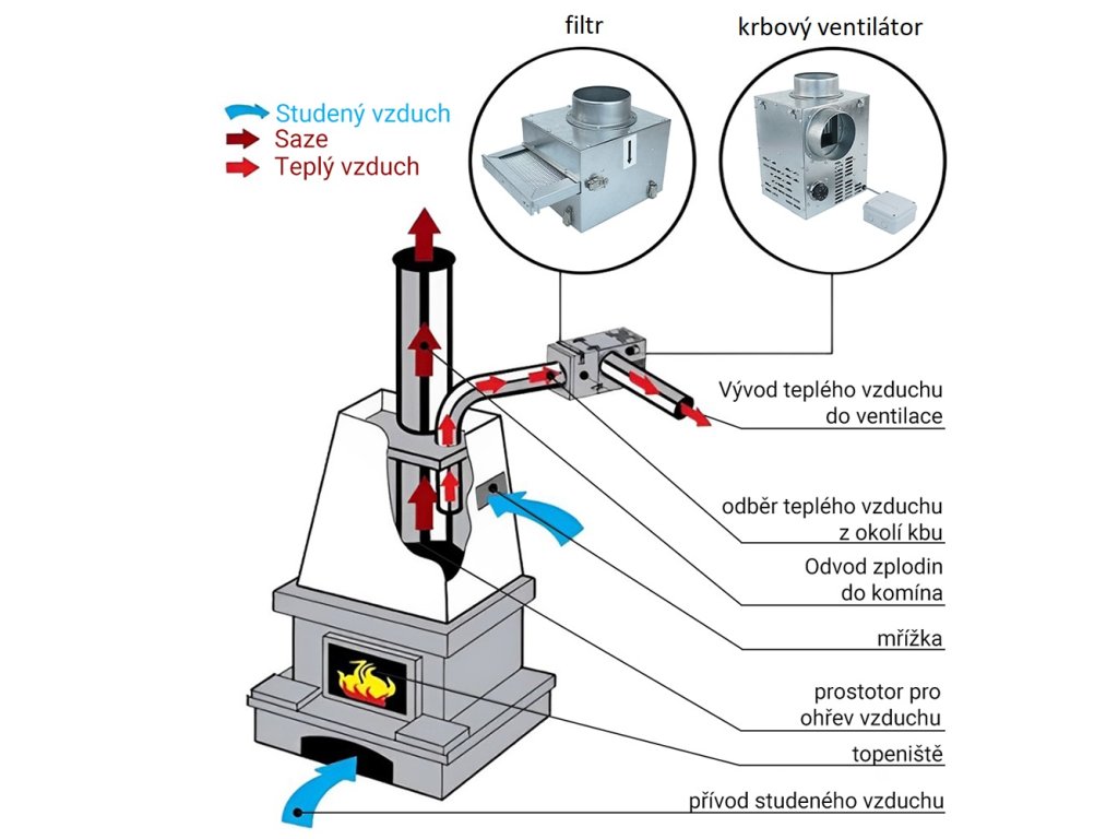 Pomocí krbovému ventilátoru přepravíte efektivně teplo z krbu do dalších prostor, kde poté není nutné využívat jiné, často dražší metody topení. Systém je vhodný například pro vytápění sezónních domů, chat, ale i vašich domovů.