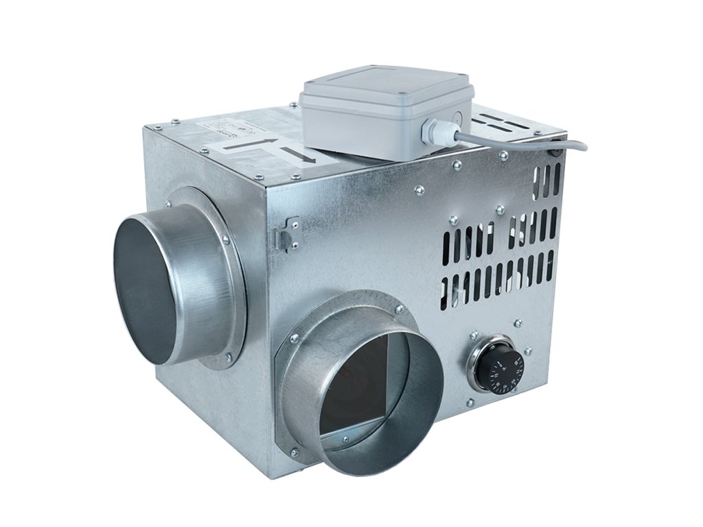 Ventilátor ke krbu a krbovým kamnům o průměru 150 mm slouží k rozvedení teplého vzduchu z topeniště od krbu nebo krbových kamen do více místností. Je vybavený tepelně a akusticky izolovaným ventilátorem vhánějícím vzduch a termostatem. Ventilátor můžete nainstalovat v jakékoliv poloze, ale ve směru proudění vzduchu.