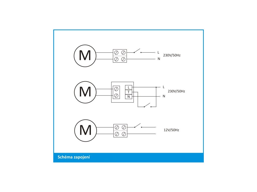 Motor: Jednofázový asynchronní motor s ochranou proti přetížení. Motor má kuličková ložiska a stálou tukovou náplň pro celoudobu životnosti.