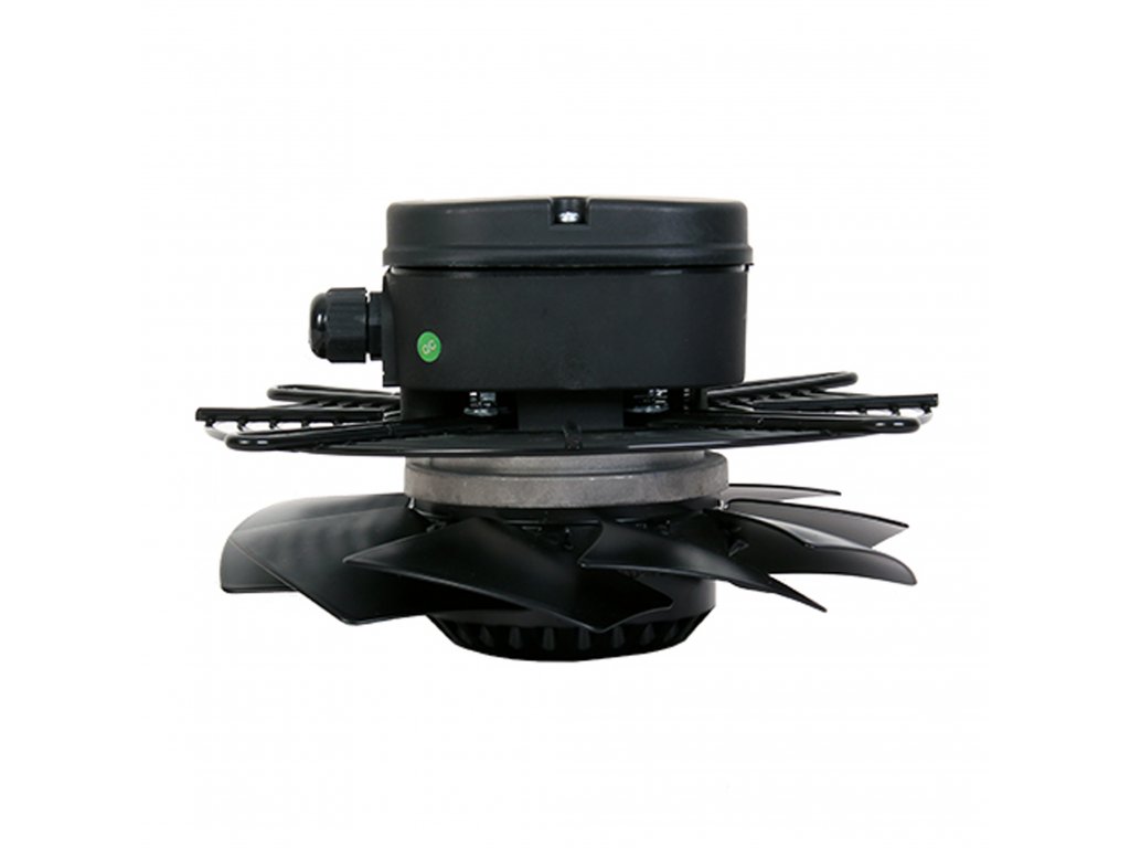 Ventilátor je osazen jednofázovým asynchronním motorem s rozběhovým kondenzátorem a s krytím IP X4 a tepelnou pojistkou proti přehřátí. Ochranná kovová krycí mřížka chrání vrtuly před poškozením. Kuličková ložiska zajišťují dlouho živostnost a montáž v jakékoliv poloze. Svorkovnice pro přípojení je součástí ventilátora a je umístěna na středu ochranné mřížky.
