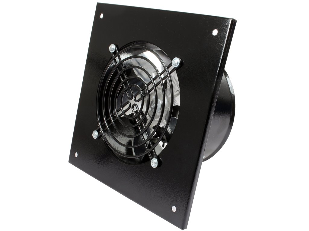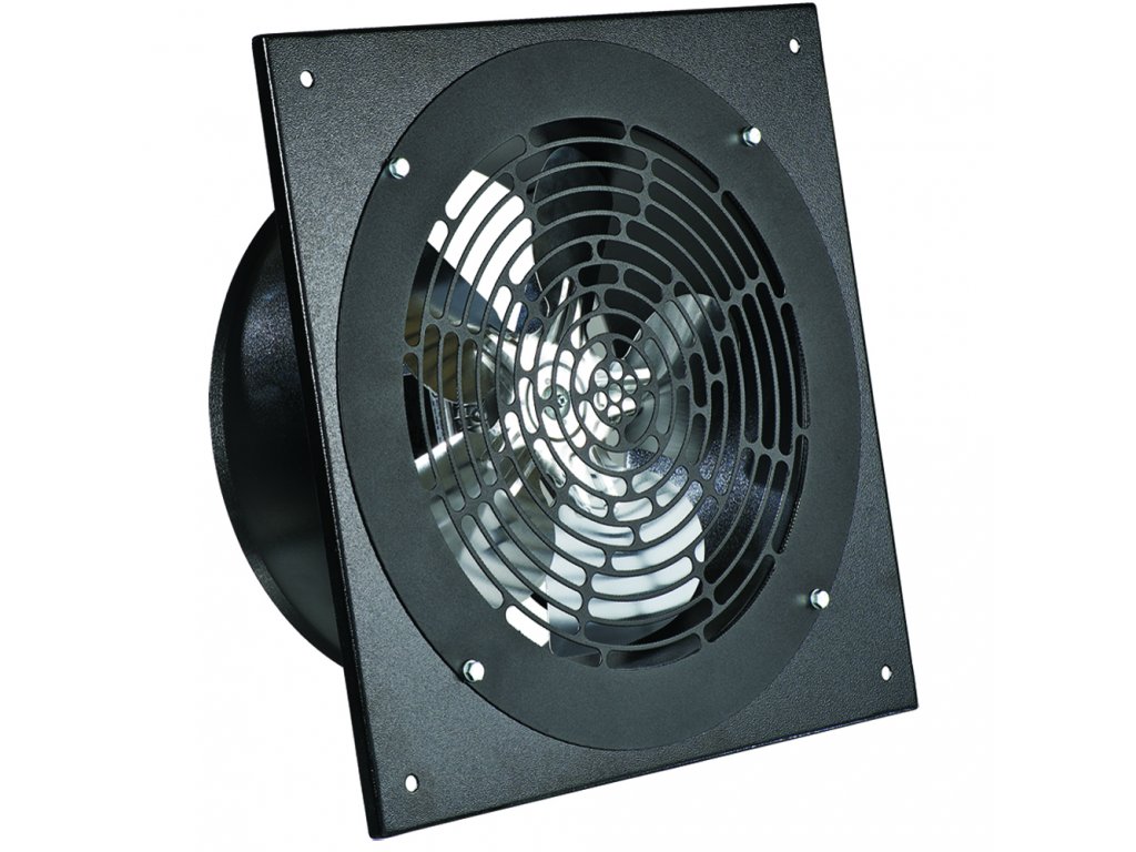 Průmyslový čtvercový ventilátor je osazený motorem s kluznými ložisky. Obsahuje také tepelnou pojistku, která motor vypne v případě přehřátí. Ventilátor je usazený v kovovém rámu, který je pokrytý odolnou polymerovou vrstvou. Vrtule ventilátoru je vyrobená z hliníkového plechu. Přední stranu ventilátoru kryje ochranná mřížka z ocelového drátu, který zabraňuje vniknutí cizích předmětů.