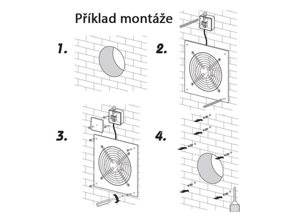 Jednoduchá nástěnná montáž. Ventilátor upevníte přímo na zeď pomocí šroubů. Jeho instalační hloubka je 11 cm.