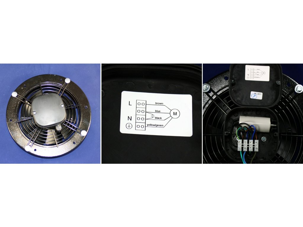 Ventilátor je svou konstrukcí přizpůsoben k dlouhodobému provozu. Ventilátor pohání jednofázový asynchronní motor s kotvou na krátko, vybavený tepelnou pojistkou proti přehřátí. Motor má rozběhový kondenzátor. Kuličková ložiska v motoru mají dlouhou životnost (min. 40000 hodin). Ventilátor je vyroben z ocelového plechu opatřeného práškovým lakem a je vhodný k montáží na zeď i strop.