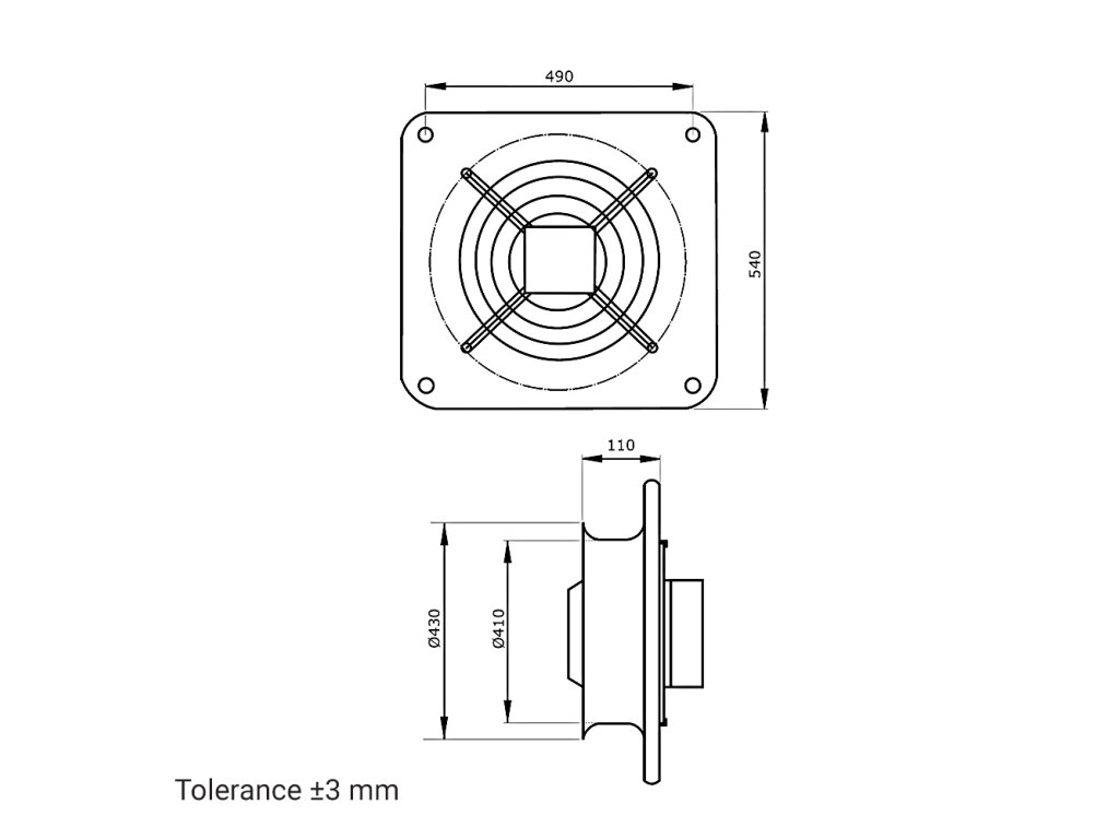 Ventilátor průmyslový Dalap, RAB, Trubo, 400, průmyslový, axiální, nástěnný, kovový, odsávací, o průměru 430, mm, příruba 540x540 mm. Univerzální, použití, např., pro, do, garáže, parkoviště, skladu, restaurace, obchodu, prádelny, autoservisy, pizzerie, a pod. Alternativní konkurenční výrobky : DOSPEL - WOKS 400, Blauberg - Axis Q 400 4E, VENTS – OV 4E 400,
