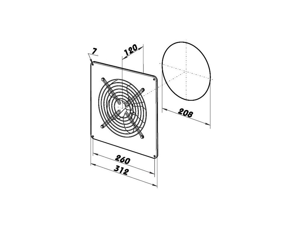 Popis : ventilátor je vybaven motorem pro nepřetžitou práci S1. Jednofázový asynchronní motor s tepelnou pojistkou. Plášť ventilátoru vyroben z kovu, galvanicky zinkovaného; lakováno práškovou barvou. Vrtule ventilátoru vyrobena z hliníkového plechu. Vhodný pro krátké vzduchové rozvody. Ventilátor pro univerzální použití. v kancelářích, restauracích, obchodech, pizzeriích, prádelnách.