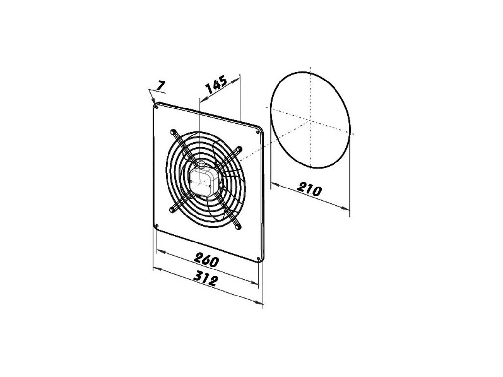 Popis : vysokovýkonný ventilátor je vybaven motorem pro nepřetžitou práci S1. Jednofázový asynchronní motor s tepelnou pojistkou. Korpus ventilátorů je vyroben z ocelového plechu a z vnitřní strany jsou opatřeny ochrannou síťkou z ocelového drátu. Vhodný pro krátké vzduchové rozvody. Ventilátory jsou vybaveny motorem s kuličkovými ložisky, což je předurčuje k využívání v nepřetržitém provozu. Ventilátor pro univerzální použití. v kancelářích, restauracích, obchodech, pizzeriích, prádelnách. Vysoká kapacita odlivu vzduchu.
