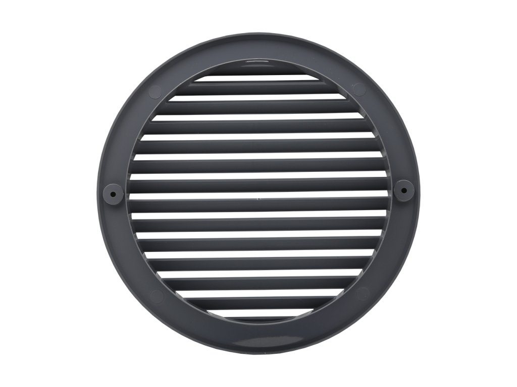Plastová kruhová větrací mřížka Dalap GP 125 KN ASA, šedá, 125 mm s pevnou žaluzií a přírubou