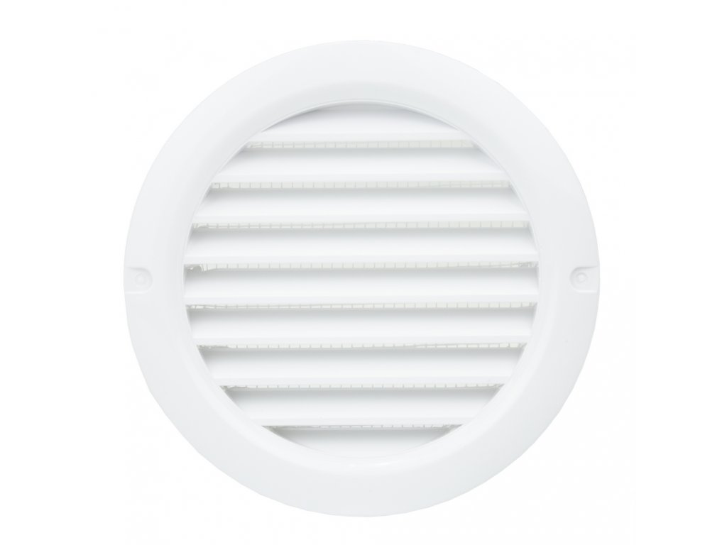 Použití : Kombinovaná mřížka pro kombinaci větrání a nasávání. Kruhová ventilační mřížka s pevnými skloněnými horizontálními žaluziemi. Pro průmyslové, obchodní, domácí větrání. Pro vnitřní, vnější, nástěnnou a stropní montáž. Uchycení pomocí šroubů na omítku. Stabilní vůči nepříznivým atmosférickým vlivům a teplotě, jednoduchost a pohodlí instalace, snadné čištění. Větrací mřížky kruhové se montují na fasádu domu a mimo standardního odvětrávání WC, koupelny, kuchyně se hojně využívají k odvětrávání sklepů, střešních plášťů a uzavřených střech. Plastová ventilační mřížka je vybavena síťkou proti hmyzu. Kompatibilní se vzduchovody o daném průměru.