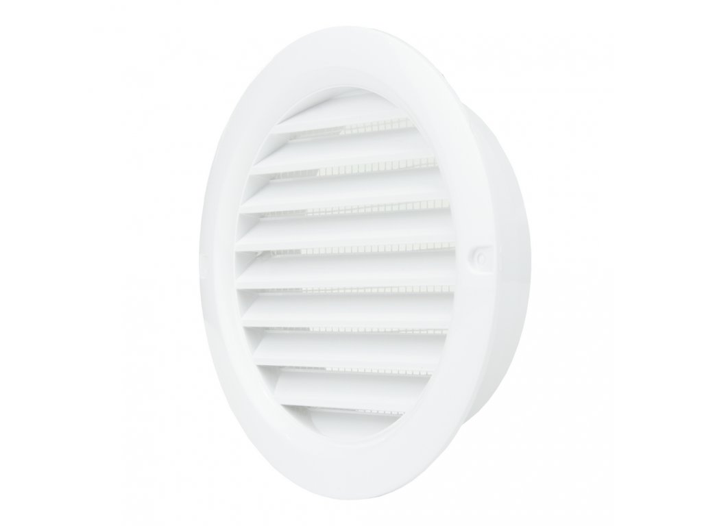 Použití : Kombinovaná mřížka pro kombinaci větrání a nasávání. Kruhová ventilační mřížka s pevnými skloněnými horizontálními žaluziemi. Pro průmyslové, obchodní, domácí větrání. Pro vnitřní, vnější, nástěnnou a stropní montáž. Uchycení pomocí šroubů na omítku. Stabilní vůči nepříznivým atmosférickým vlivům a teplotě, jednoduchost a pohodlí instalace, snadné čištění. Větrací mřížky kruhové se montují na fasádu domu a mimo standardního odvětrávání WC, koupelny, kuchyně se hojně využívají k odvětrávání sklepů, střešních plášťů a uzavřených střech. Plastová ventilační mřížka je vybavena síťkou proti hmyzu. Kompatibilní se vzduchovody o daném průměru.