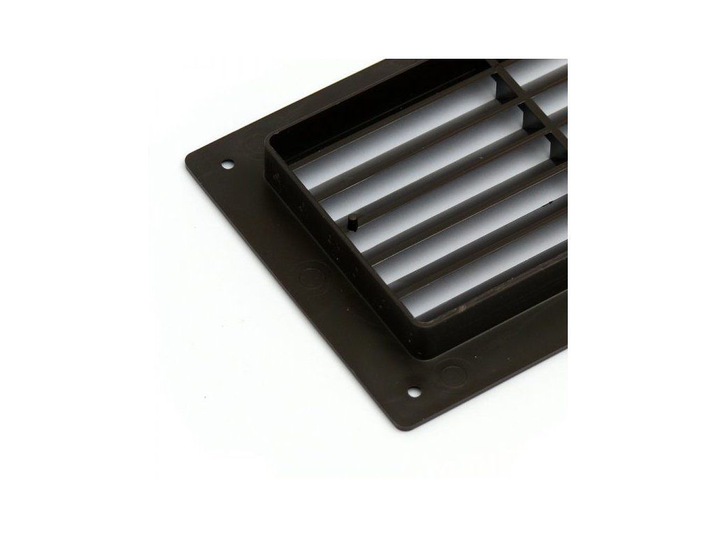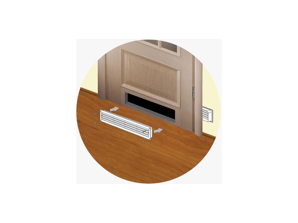 Použití : Kombinovaná plastová mřížka pro kombinaci větrání a nasávání. Ventilační mřížka s pevnými skloněnými horizontálními žaluziemi. Pro průmyslové, obchodní, domácí větrání, vytápění a klimatizaci. Pro vnitřní a vnější montáž. Uchycení pomocí šroubů. Použití pro instalace do dveří koupelen, toalet, kuchyní, garáží a pod. Mřížka je hojně využívána k odvětrávání dvojitých stěn v případě, že je před vlhkou stěnu postavena další ze sádrokartonu. Plastová dveřní mřížka na minimální tloušku dveří 32 mm.