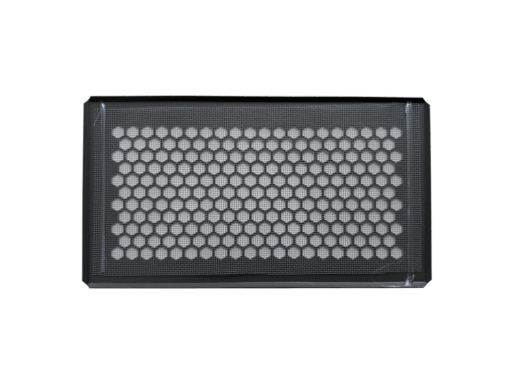 HEXA větrací mřížky jsou vyrobeny z pozinkovaného plechu o síle 0,8mm, s ohybem 45° a opatřeny odolným antracitovým lakem RAL 7016, který poskytuje mřížce vynikající ochranu proti korozi. K průtoku vzduchu, respektive pro ventilací slouží otvory v designu plástve.
