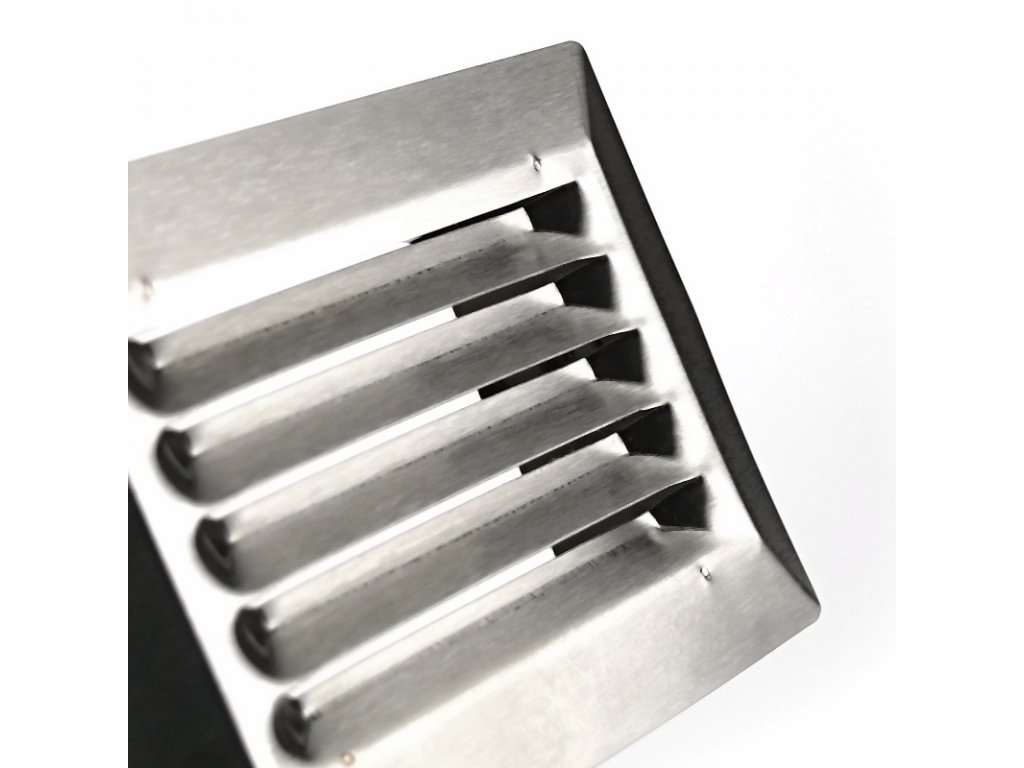 Mřížka se nasazuje na ventilační kanál 110x55 mm a drží pomocí čtyř pružinek, které jsou přibodovámy na vnittřní straně mřížky, Mřížka je určena do teploty 70 °C a je vyrobena z nerezové oceli.