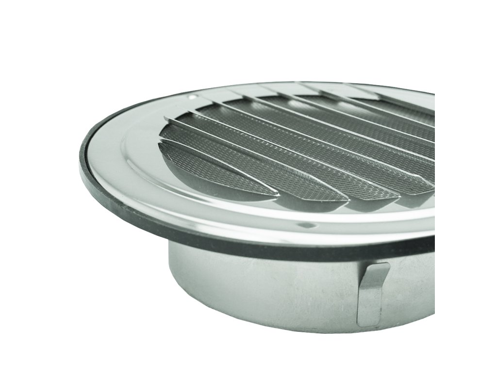 Použití: Kombinovaná mřížka pro kombinaci větrání a nasávání. Ventilační mřížka s pevnými skloněnými horizontálními žaluziemi. Pro průmyslové, obchodní, domácí větrání, vytápění a klimatizaci. Pro vnitřní a vnější montáž. Uchycení pomocí šroubů na omítku, nebo lze pomocí nabodovaných pružin vsunout přímo do vzduchotechnické trubky. Stabilní vůči nepříznivým atmosférickým vlivům a teplotě, jednoduchost a pohodlí instalace, snadné čištění. Nerezová mřížka je vybavena síťkou proti hmyzu. Kompatibilní se vzduchovody o daném průměru.