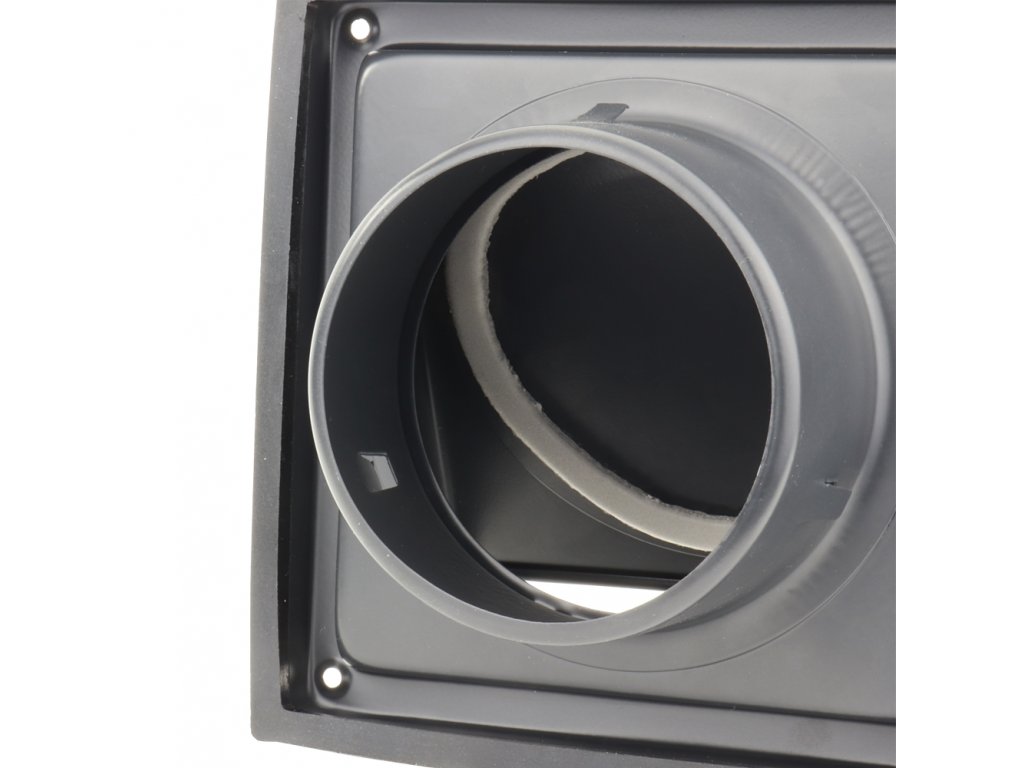 Kovová zpětná klapka má po svém vnitřním obvodu pěnovou pásku. Po vypnutí ventilace, kdy se klapka uzavře, tak nedochází ke hluku. Také na vnitřní straně stříšky je pěnový bod, který eliminuje případné rány při okamžitém plném otevření klapky.