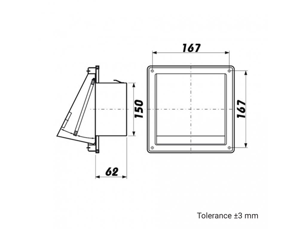 Nerezová větrací a ventilační mřížka s klapkou najde své využítí tam, kde je potřeba pouze jednostranné větrání. Mřížka se používá pro odvod vzduchu z digestoří, odsavačů par apod. Zpětná klapka u této mřížky propustí vzduch pouze jedním směrem a současně při vypnutém odvětrávání zabrání zpětnému nasávání vzduchu a vniknutí ptactva, hmyzu a drobných hlodavců do vzduchovodu. Mřížka svojí konstrukcí zabraňuje i možnému vniknutí vody do vzduchovodu v případě deště.