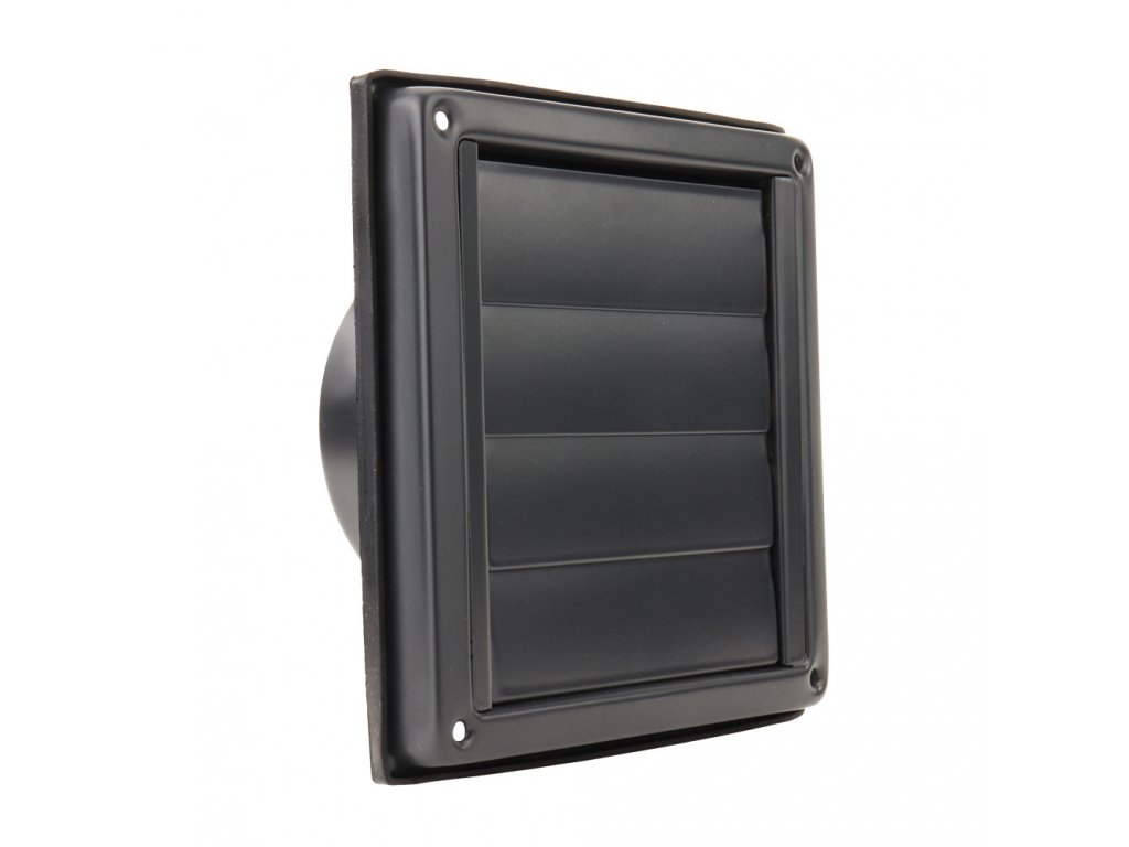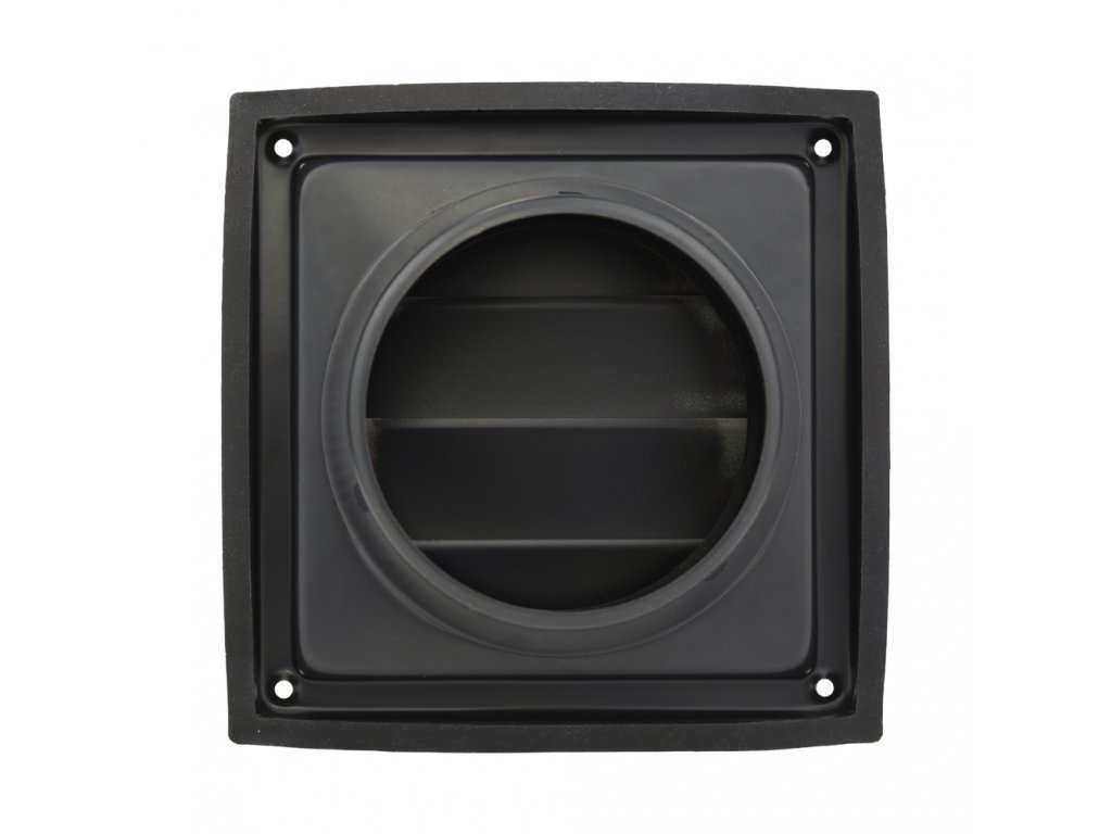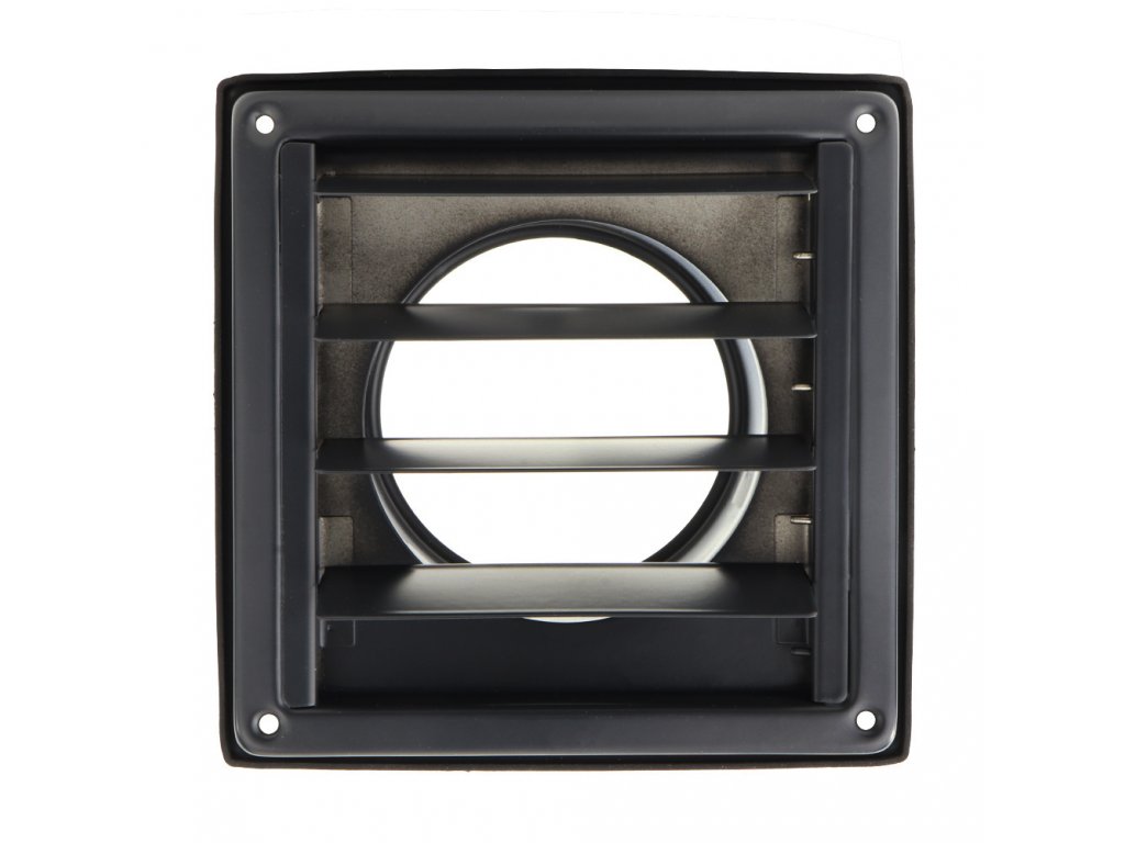 Nerezová ventilační mřížka v černé barvě Dalap GM 125 RFND 180x180 mm je vhodná pro ukončení vzduchovodu o průměru 125 mm.