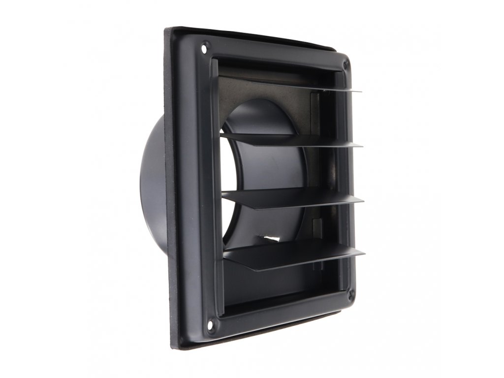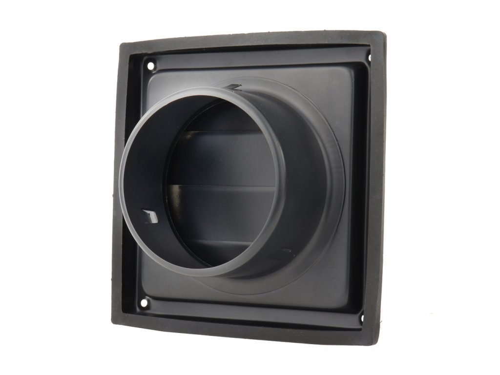Nerezová ventilační mřížka v černé barvě Dalap GM 150 RFND 180x180 mm je vhodná pro ukončení vzduchovodu o průměru 150 mm.