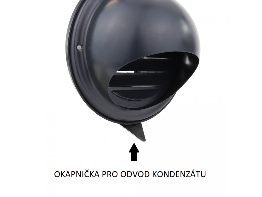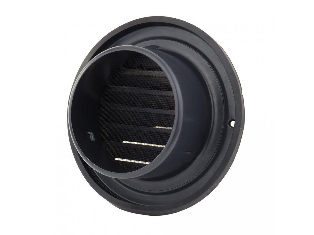 Nerezová ventilační mřížka v černé barvě Dalap SUVLAD 125 mm je vhodná k instalaci na fasádu pro ukončení vzduchovodu o průměru 125 mm.