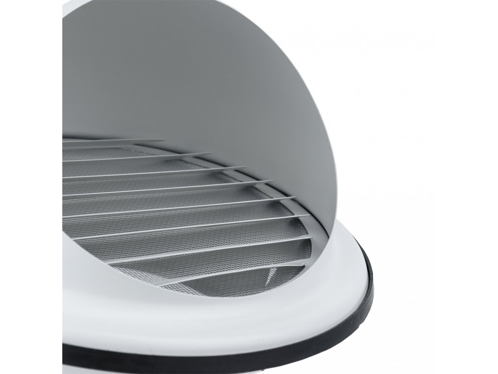Kombinovaná mřížka pro kombinaci větrání a nasávání s pevnými skloněnými horizontálními žaluziemi. Kombinace stříšky a síťky chrání vzduchovod před vniknutím nečistot, dešťové vody, drobných živočichů a hmyzu, dále brání před případným znečištěním venkovní zdi, např. výpary z vaření.