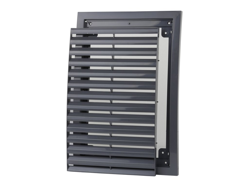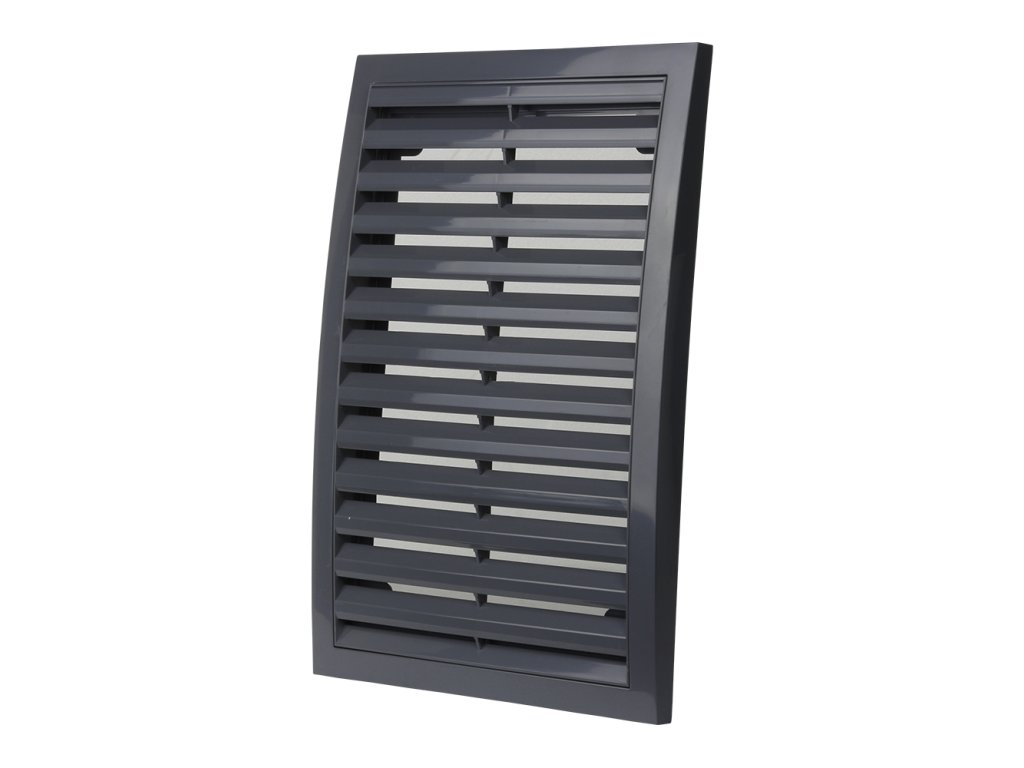 Plastová obdelníková větrací mřížka Dalap GP 180x250 RN ASA, šedá, s pevnou žaluzií