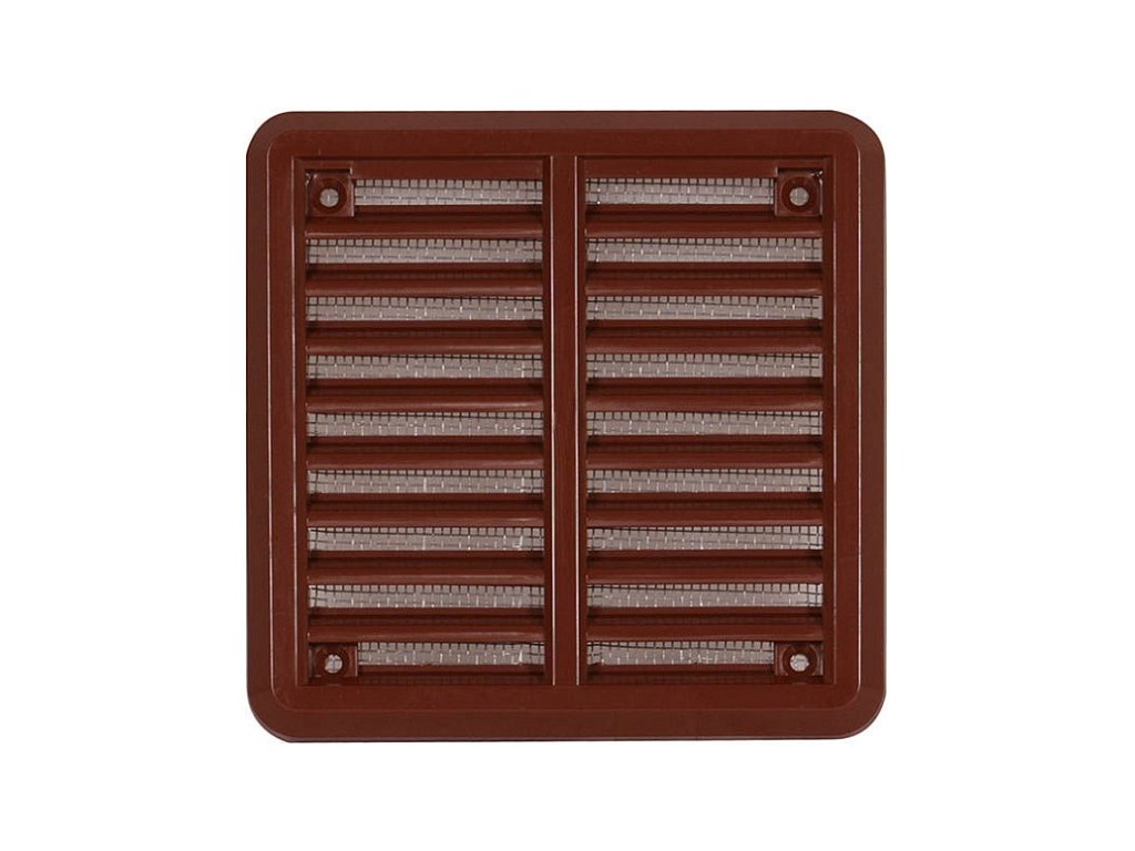 Mřížka, mřížky, plastová, plastové, plast, PVC, ABS, ventilační, větrání, odvětrání, odvětrávací, se, síťkou, na, fasádu, fasádní, zeď, omítku, nástěnná, vnitřní, venkovní, stropní, nasávací, hnědá, 10x10, cm,